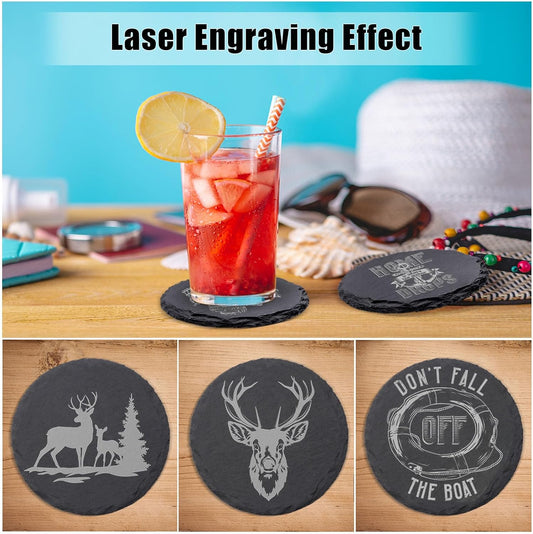 Lucifer Slate Coaster Anti Slip Legs Laser Engraved